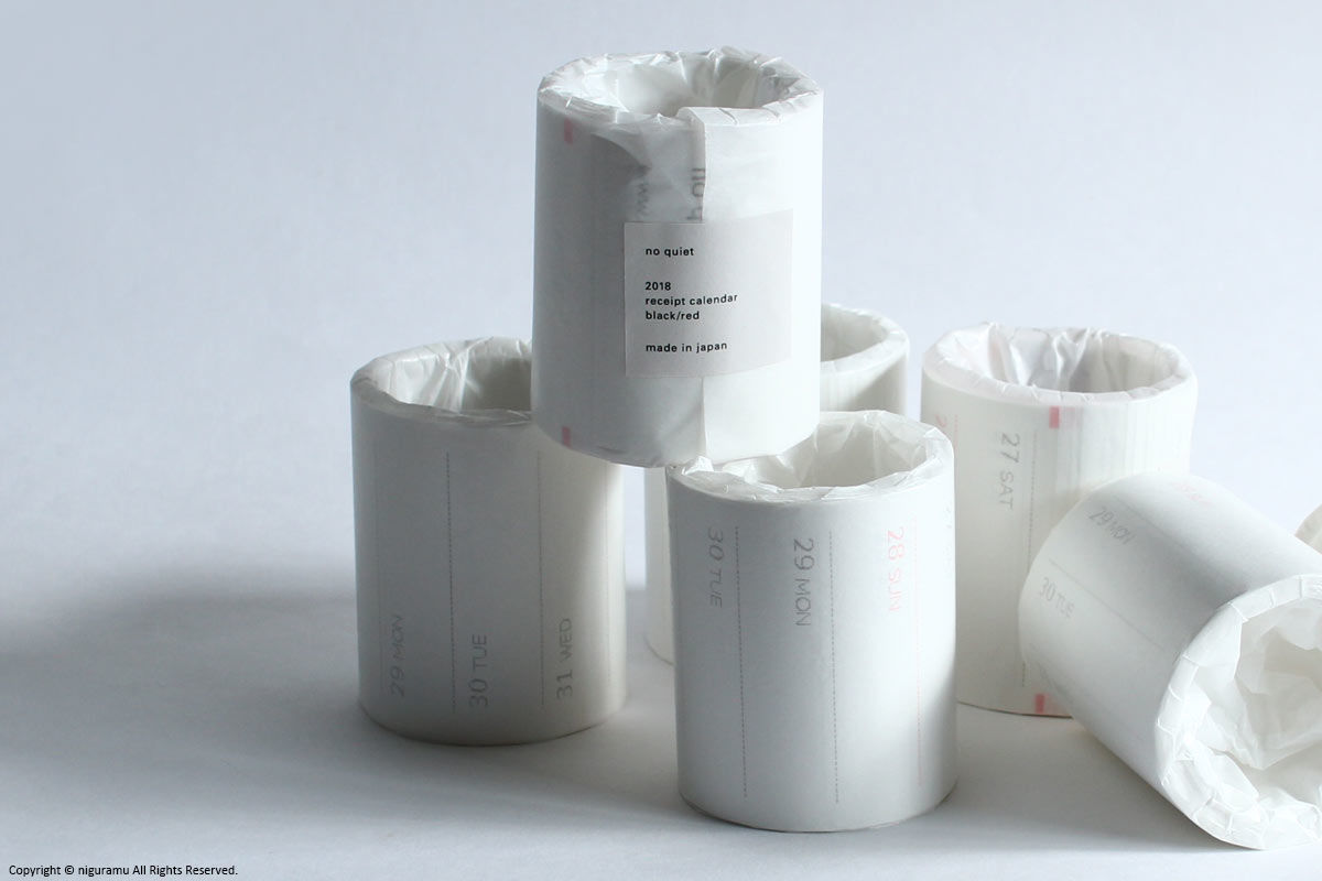 レジスターで印刷されたドット文字と細長が特徴のカレンダー。1ヶ月ごとにカットして使用します。1ヶ月の連続したスケジュールを縦に記載できるので、重複した予定も見やすく便利です。
