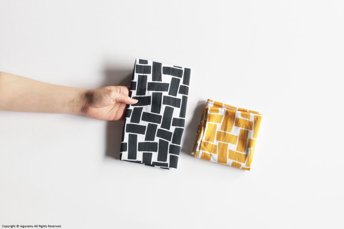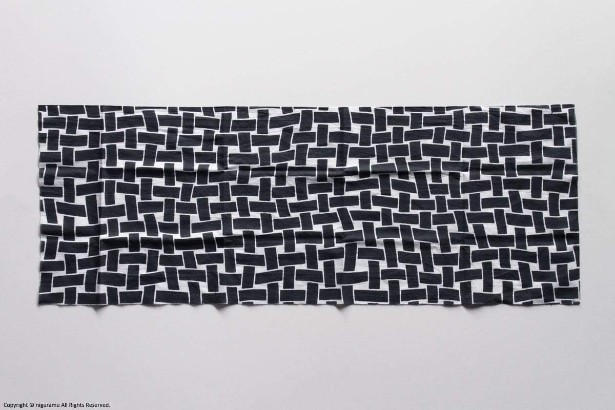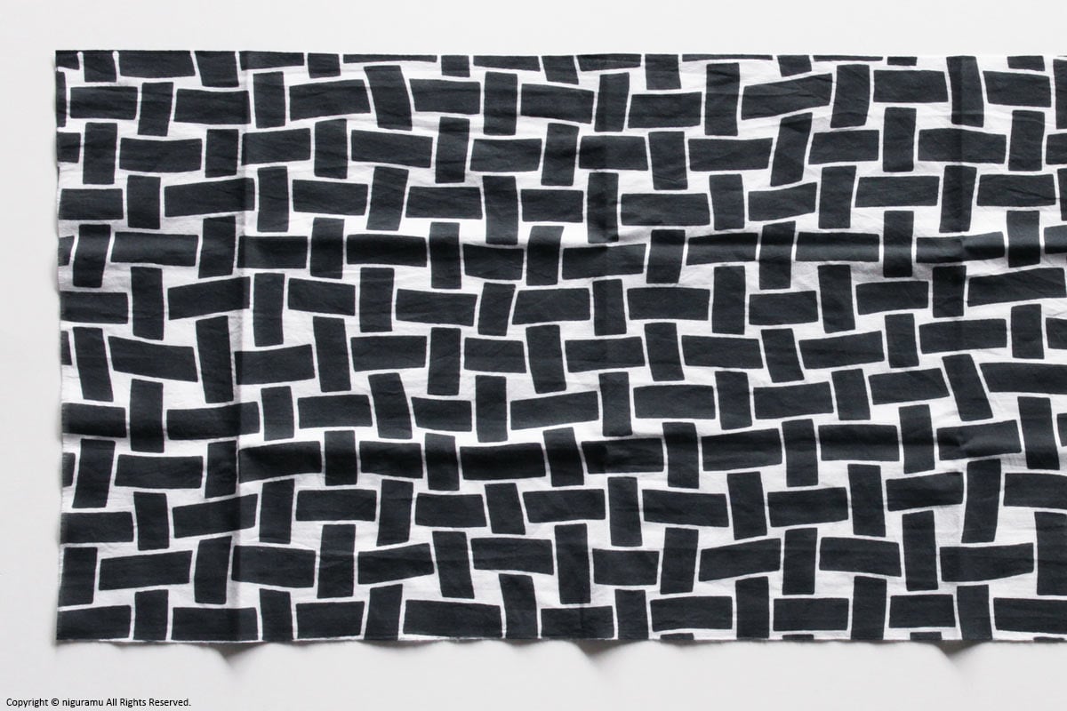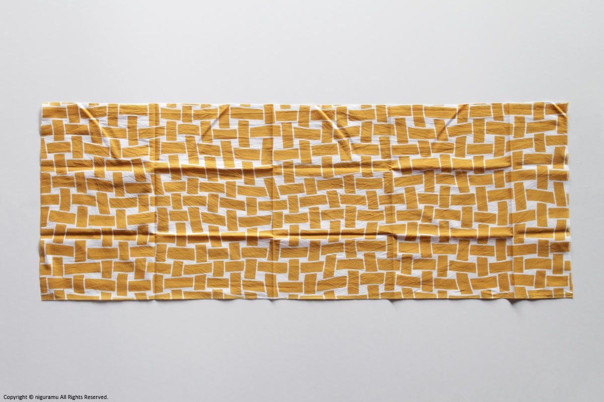 - 注染(ちゅうせん)という「型を使って布に防染糊を置き、たたんだ生地の上から染料を注ぐ」という方法で染められています。染めの特性上、若干の色ムラや柄のにじみがあります。