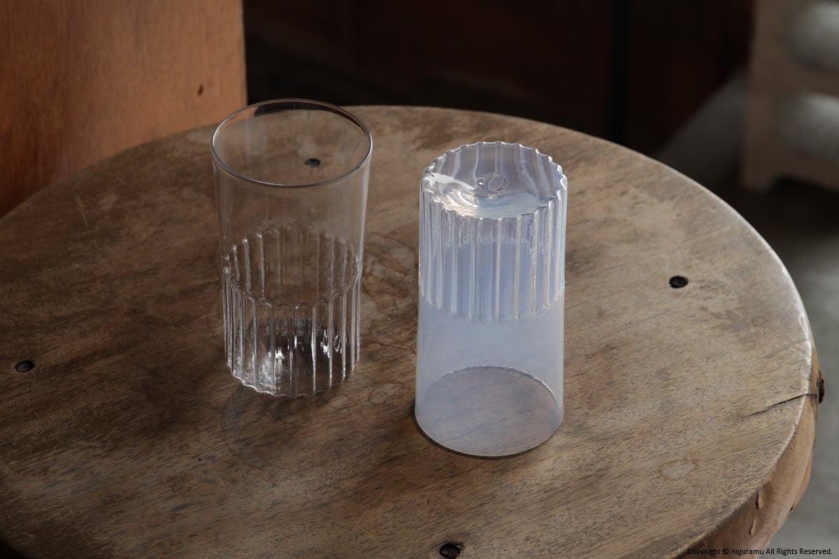 - ガラスの表面に凹凸があるもの、内部に気泡があるものがございます。
