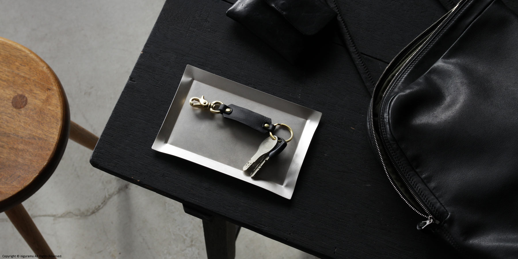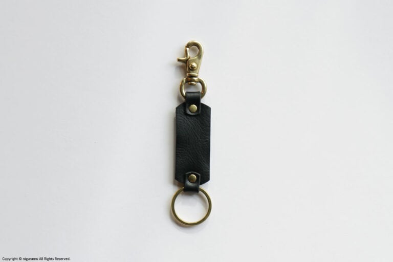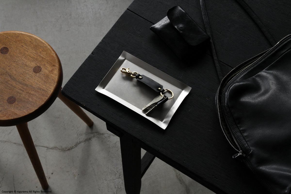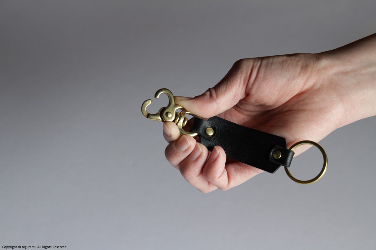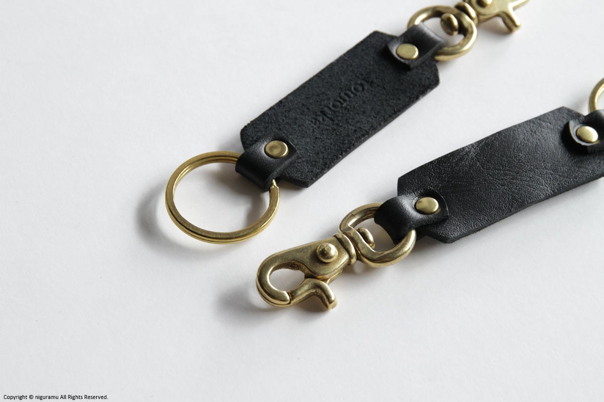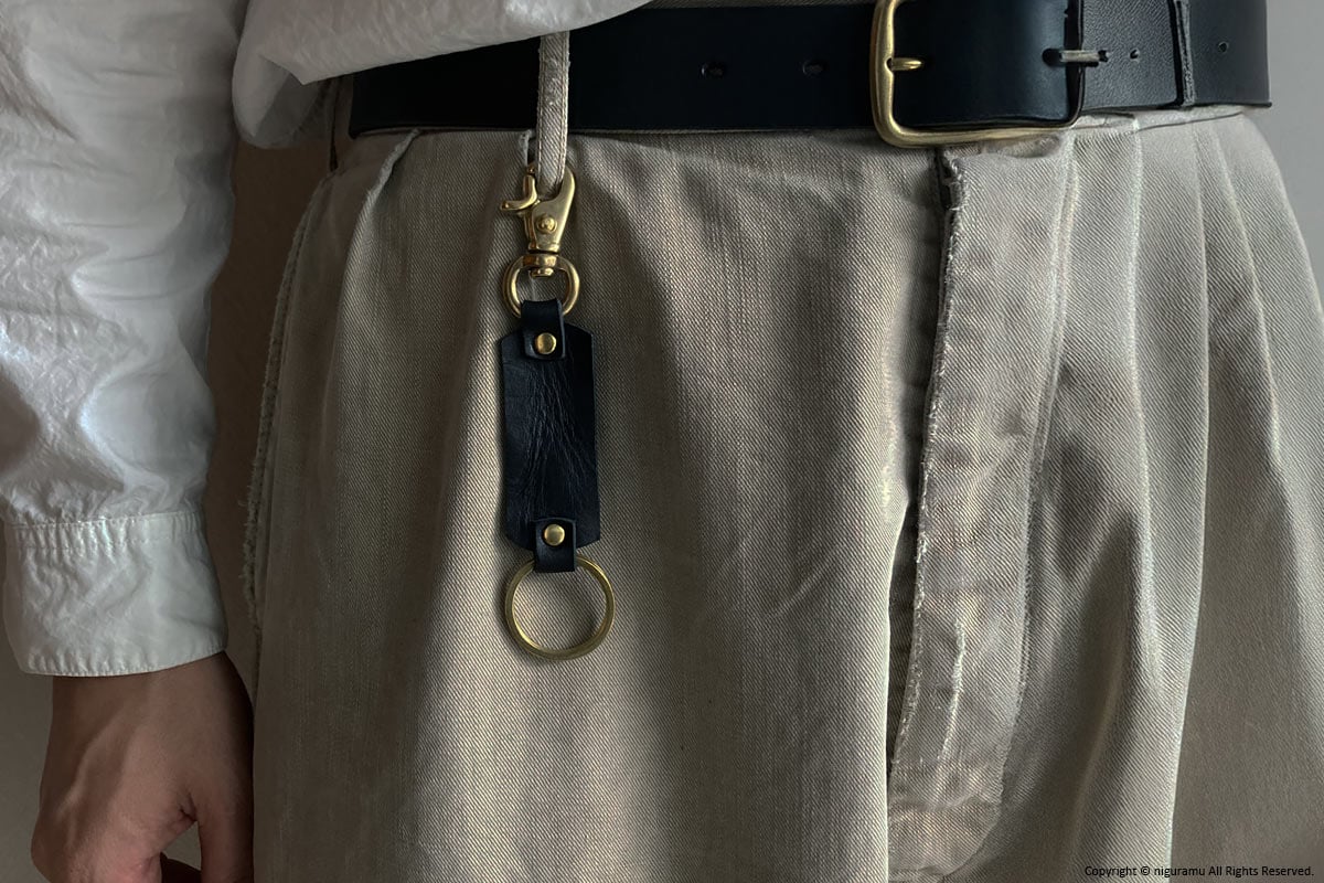 真鍮製リングとレバースナップ、天然鞣し革のパーツは、使い込んでいく経年変化をお楽しみいただけます。