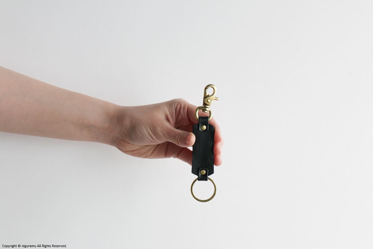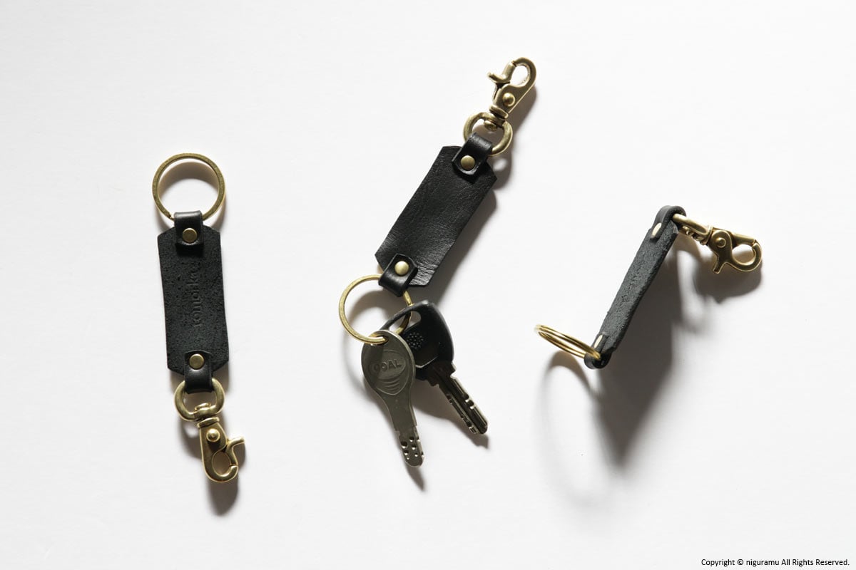 出かける際にレバースナップで、パンツのベルトループやバッグなどに留めつなぐことができるキーリング。